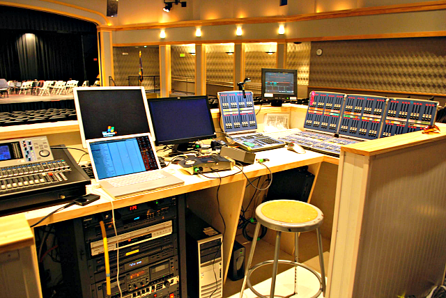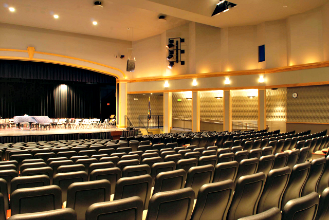 Gananda Central School District was in the process of building their new auditorium when AVL was brought into the project. The shape of the room had already been decided so we worked with the wall and ceiling surfaces for acoustic control. The overall design goals were to achieve a nice, natural sounding space that would have good acoustics for band and orchestral performances without requiring the use of the sound system. To accomplish this, AVL decided to create a relatively mid-range reverberation time and mid-range diffusion characteristics in the room. There were some issues with the ability to place specialty materials into the room due to the previously completed design of the space but we were able to work with more standard masonry and ceiling materials to obtain the desired characteristics. The theatrical lighting system includes two catwalks as well as four electrics and border lights on the stage. All fixtures used in the system are ETC and the system is controlled with a Strand 300 Series console.