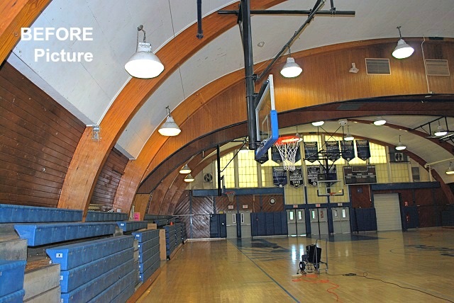 The gymnasium at Ichabod Crane suffered from poor acoustics and an aged sound system. Based on field design, AVL determined that a new sound system by itself would not provide adequate results; the acoustics had to be addressed. Beyond the overall high reverberation time, there were specific echoes caused by the barrel vaulted shape. The barrel vaulted space was covered in Homasote panels which had been painted several times. This effectively negated the small amount of absorption the Homasote provided. There was not budget to completely remove the Homasote so we decided to treat the curve specific echo areas. Utilizing a high NRC Epic ER3.5A roof deck material installed in a novel manner, we were able to control reverberation and echoes. This fix combined with a sound system design that minimized activation of the remaining Homasote areas results in a highly intelligible sound. Cosmetic upgrades included in the project finished the space with a more modern appearance.
