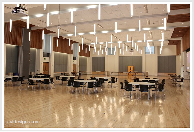 Seymour College Union at SUNY Brockport was being underutilized by the campus due to a dated interior, poor lighting, poor acoustics and minimal AV capabilities. So, under those conditions, it was not the “go-to” space on campus. The university decided it was time for an upgrade. AVL Designs Inc., partnered with Holt Architects, was enlisted to give the space new life. Improved acoustics with absorptive fabric and wood acoustics elements tamed a 3 second reverb time (think “Ice Rink”) down to a well behaved 1.25 seconds. This was a great improvement. A brand-new audio system, with both stage and distributed loudspeakers, was also added. Independent AV systems were installed in multiple huddle-style locations, along with bright fresh room lighting*, all under control of a Crestron control system. The extensive re-do has been well-received. Seymour Hall is now a popular, highly used facility! *Credits: Lighting and interior designs – Holt Architects