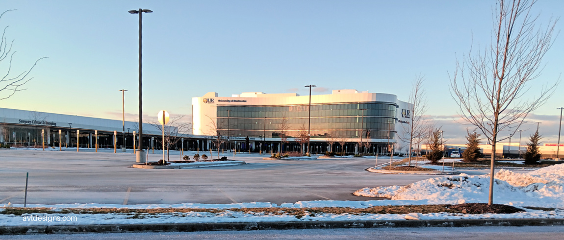 University of Rochester Medical Center’s new Saunders Center for Orthopaedics and Physical Performance is located in the south end of the Marketplace Mall in Henrietta, New York. This brand-new outpatient orthopaedics facility was created to provide greater convenience accessing healthcare services. AVL Designs Inc. provided acoustical isolation of the new URMC spaces from the existing and operational mall area, bus stops, and parking lots. AVL also crafted the acoustic designs for interiors in the lobby, meeting and conference rooms, and large lecture hall. The design intent was to provide spaces that would not require amplification for many functions, while also being excellent for streaming and teleconferencing. (https://www.urmc.rochester.edu/orthopaedics-center)