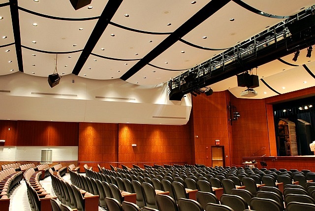 Victor HS Auditorium Reconstruction • This project involved a major reconstruction of an existing auditorium including: • Raised Roof Over stage – Fly Space and new rigging. • New catwalks • New stage rig ging system • New theatrical lighting system • New audio system • New video presentation system an controls • Acoustical correction • AVL provide design for all of these elements and consulting for general design criteria for the space.