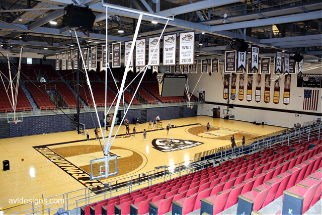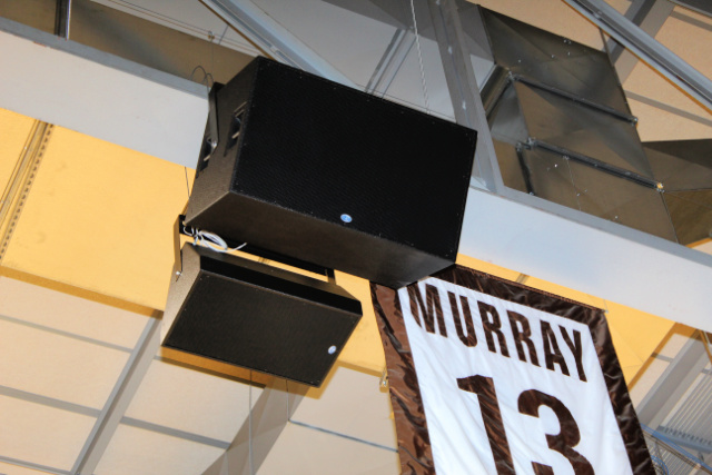 The purpose of the renovation was to improve sound intelligibility for game announcing plus other room uses such as graduation ceremonies and events containing musical content. Danley Sound Labs Inc. and Fulcrum Acoustic LLC. loudspeakers were chosen for their phase coherence, moderate cost, and high SPL capability.