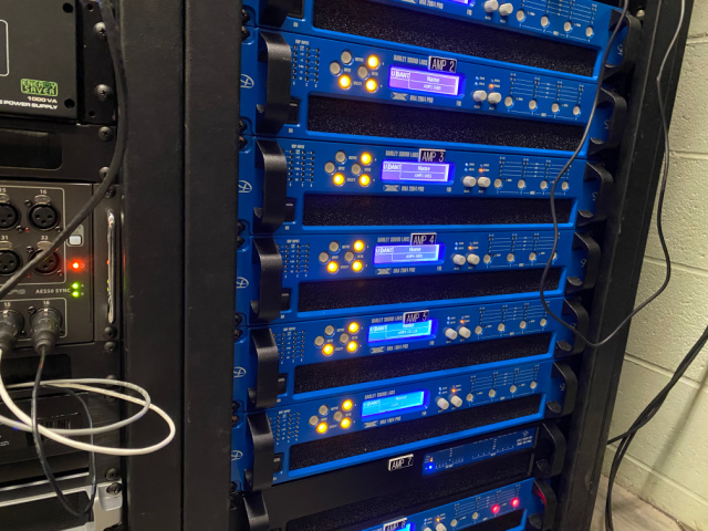 Combinations of SH 96i, SH 69i, CX1226, GH60, and DBH 218 subwoofers were selected to cover the various venue orientations. Power is provided by Danley DNA Amplifiers. Midas M 32 consoles are utilized for the arena, as well as on-air video systems. Sennheiser wireless systems are coupled with Neve Portico 5045 processors to provide high gain before feedback operation. QSC Core 500i processors are used to provide DSP and control processing.